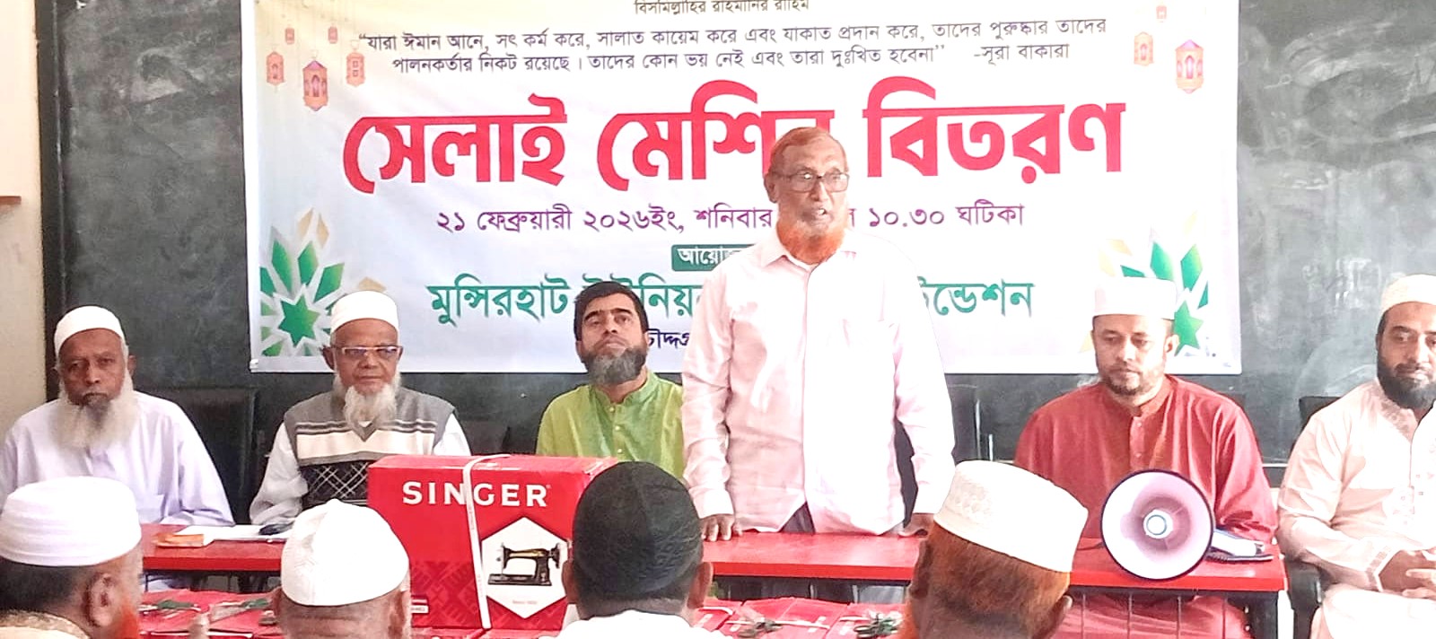 কুমিল্লার চৌদ্দগ্রামে মুন্সীরহাট ইউনিয়ন যাকাত ফাউন্ডেশনের উদ্যোগে স্বাবলম্বী প্রকল্পের আওতায় অসহায় ১০ জন নারীর মাঝে সেলাই মেশিন বিতরণ করা হয়েছে। যাকাত ফাউন্ডেশনের পক্ষ থেকে সেলাই মেশিন উপহার হিসেবে পেয়ে সন্তোষ প্রকাশ করেছেন উপকারভোগি নারীগণ।